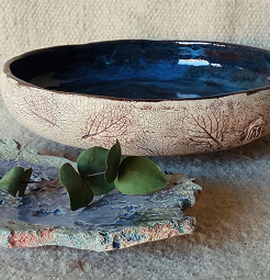 Mi trabajo combina la tradición cerámica con la experimentación de materiales. A través del barro y el vidrio reciclado, transformo ideas en piezas únicas. Cada creación es una expresión de identidad y sensibilidad.